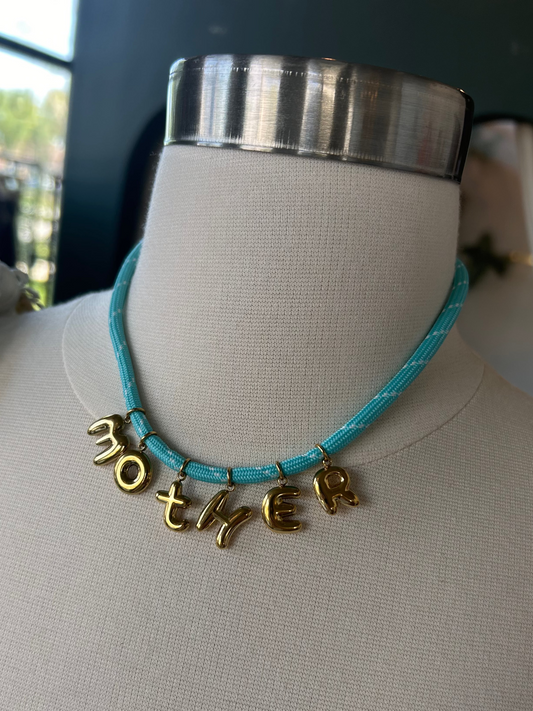 Bonne Mere MOTHER Rope Necklace - Aqua
