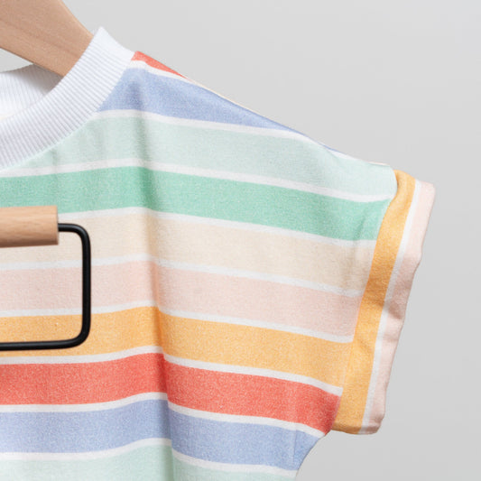 JuneJuly Retro Rainbow Stripes Shorties + Tee Shirt Set