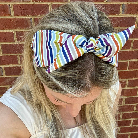 Colorful Stripe Boho Satin Scarf Bow Knot Headband