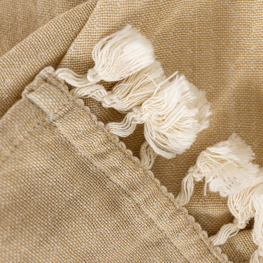 Bea Kitchen Towel Tan Cotton with Fringe Tassels